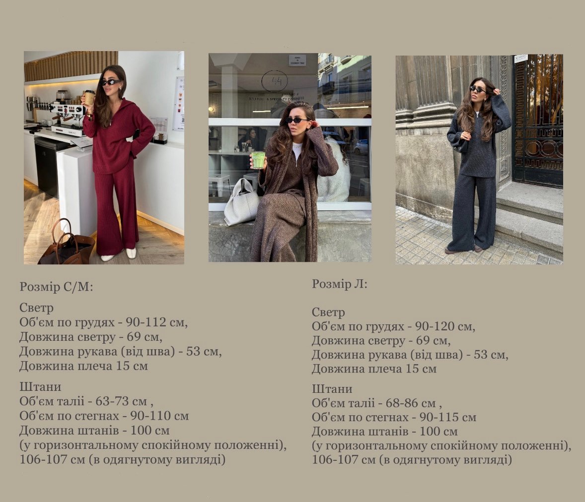 Неймовірно стильний та теплий комплект светр + штани Склад: 25% вовна, 60 % акріл, 15% поліамід