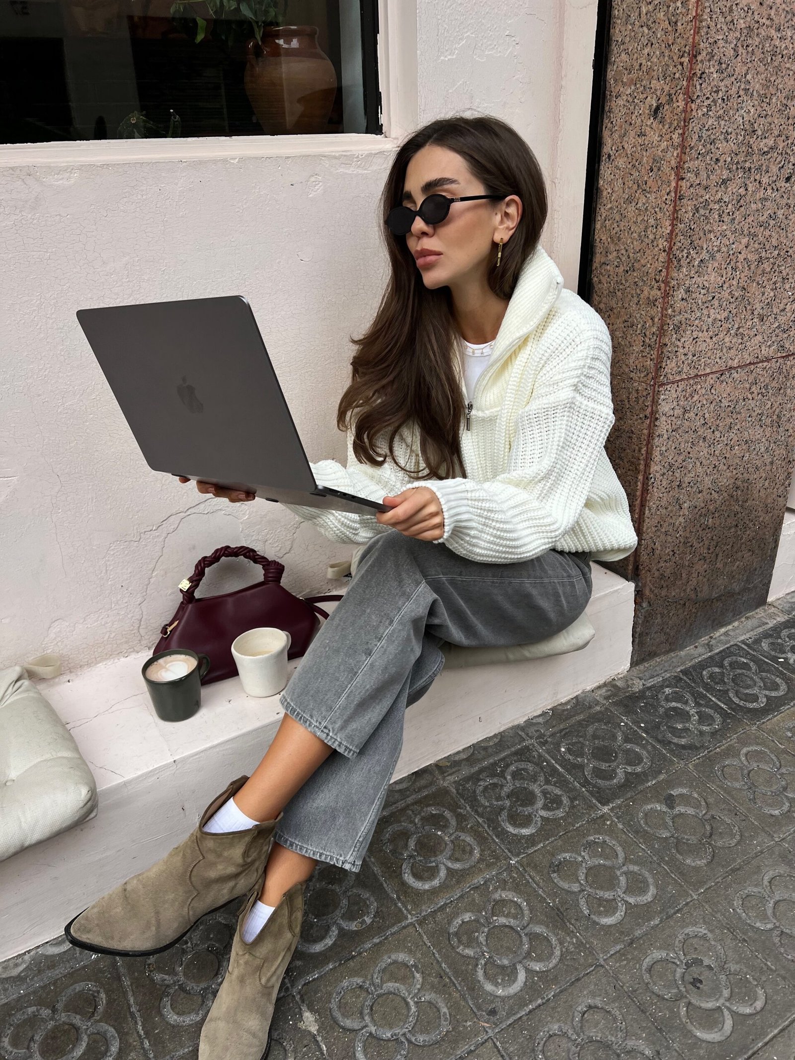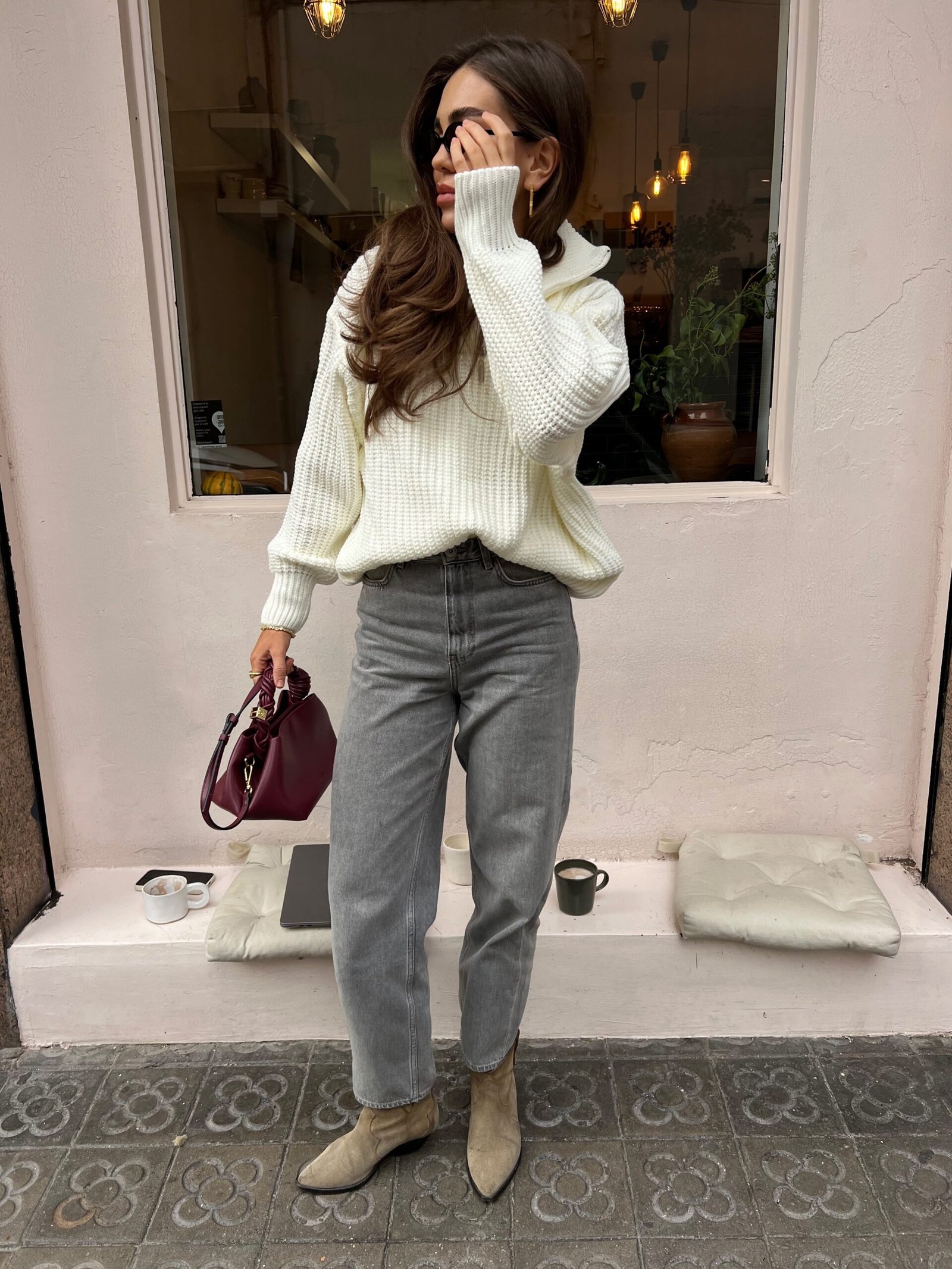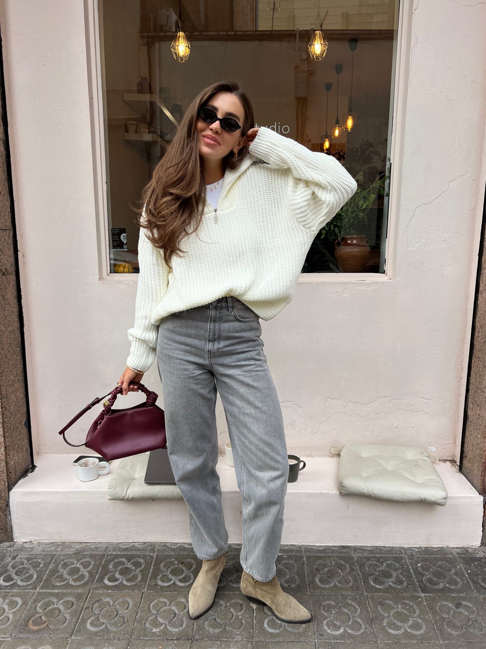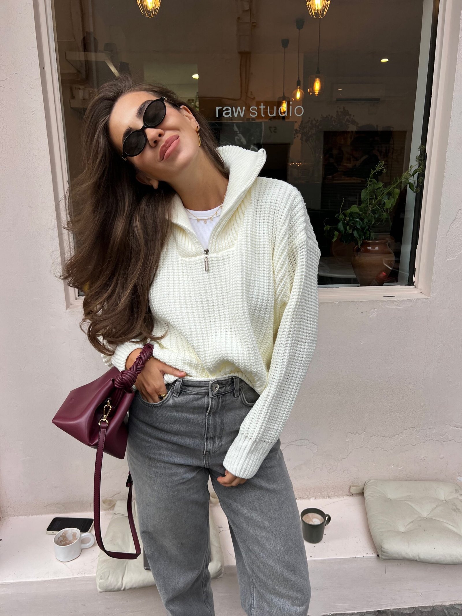 Ідеальний осінній светр з високою горловиною на блискавці.